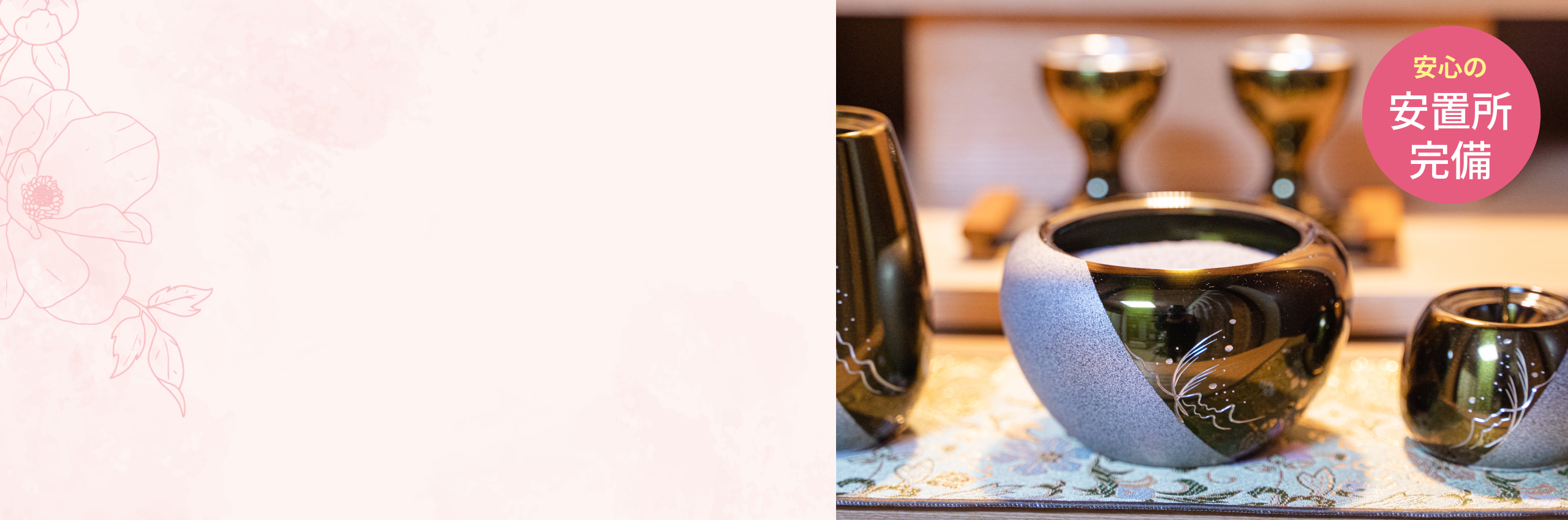 急なご不幸の際も、葬愛メモリアルはすぐに駆けつけます。「どうしたらいいのか…」と戸惑うご家族にの不安を和らげ、安心してお見送りの準備ができるようお手伝いいたします。