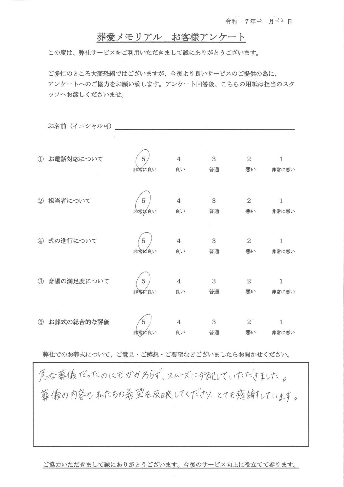 知り合いの紹介でしたし最初から安心していました。 葬愛メモリアルさんに頼んで良かったです。