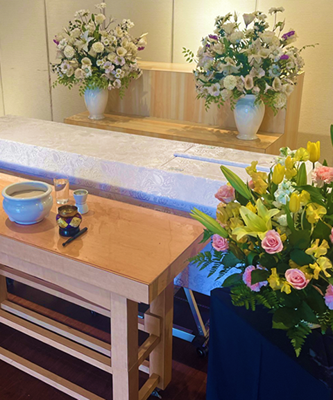 ご遺体をお棺に納めた後、式場へ移動し、通夜の準備に入ります。