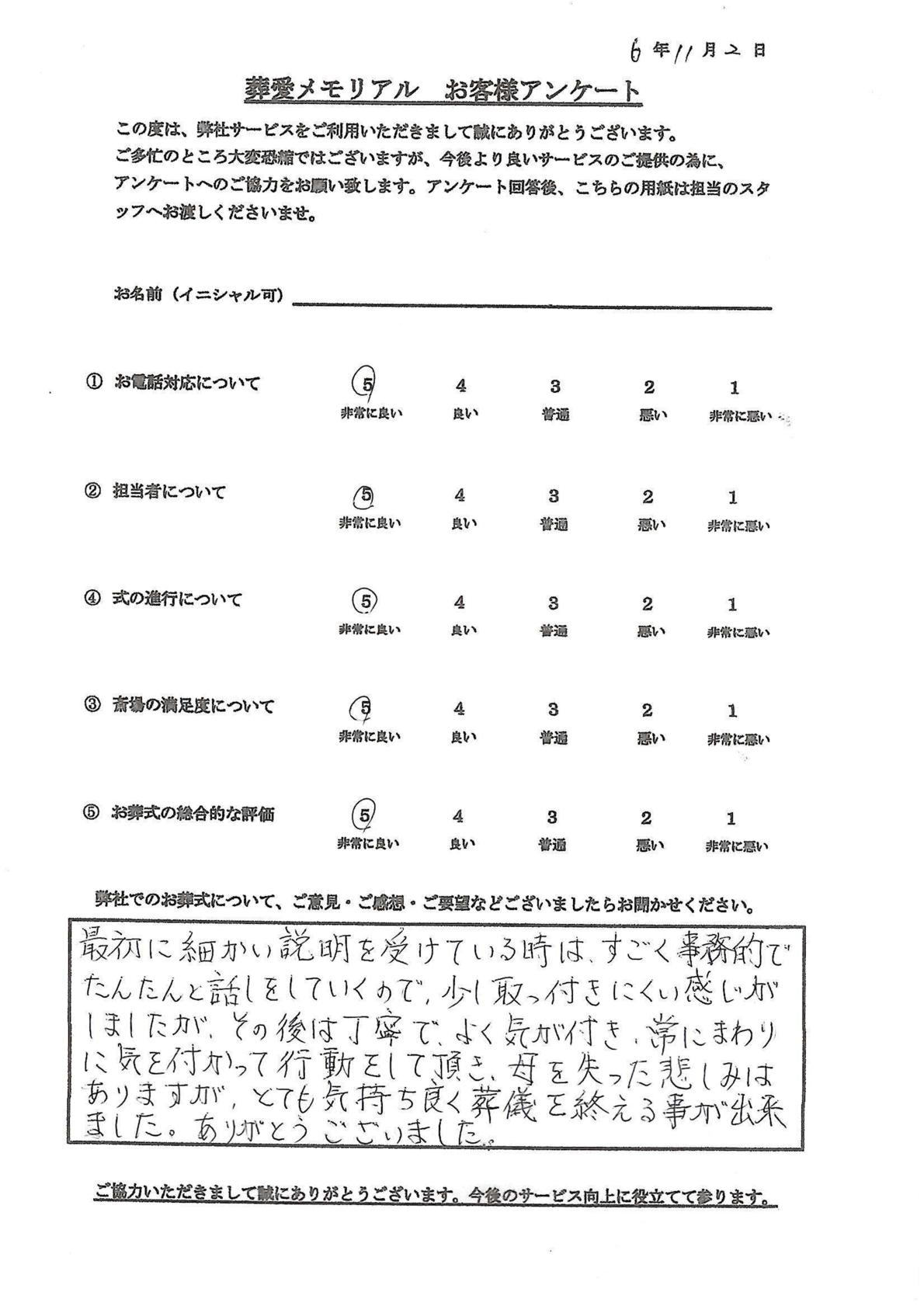 費用面で特に相談に乗っていただき、葬儀社様には大変申し訳なかったです。 それでも心良く祖父の葬儀を行なっていただき感謝しかないです。 -